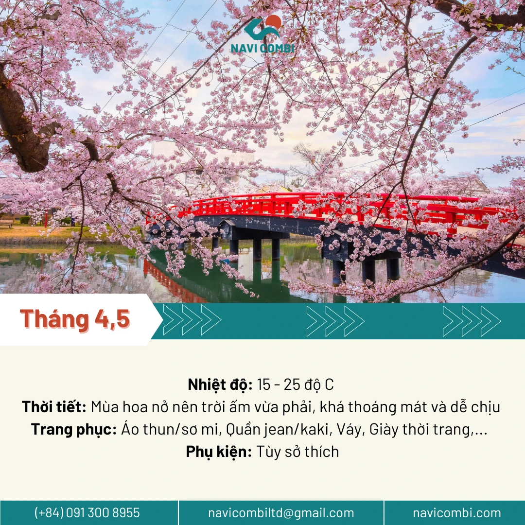 🌤 Thời tiết: Mát mẻ, ấm vừa phải, rất dễ chịu, là thời điểm lý tưởng để du lịch và ngắm hoa anh đào.